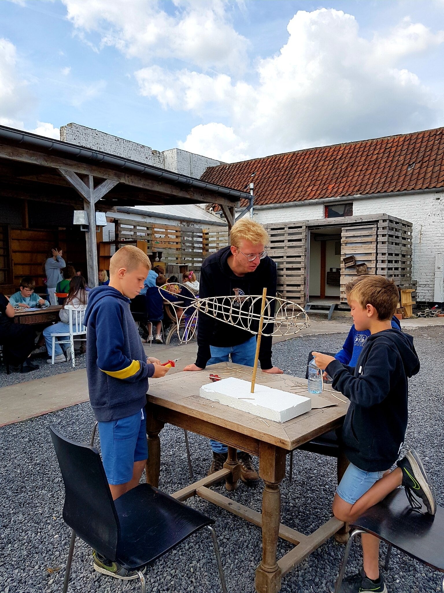 De vondsten uit het Lisseweegs vaartje vormden het vertrekpunt voor een artistiek parcours. Vanuit een vormelijk onderzoek ontstonden indrukwekkende tekeningen van waaruit we de maquettes voor de creaturen ontwierpen. 10 imposante sculpturen door 45 kinderen gecreëerd verschijnen op 19 en 20 augustus op en rond het water van het vaartje.